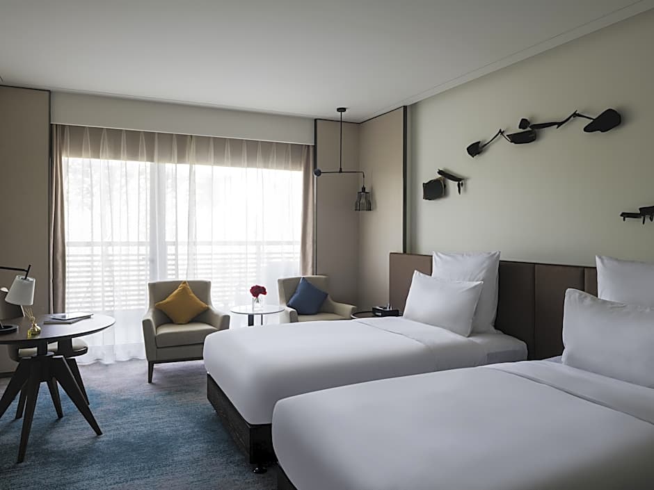 The twin room includes a private bathroom, well-fitted with a bath, a shower, a hairdryer and slippers. The spacious air-conditioned twin room provides a flat-screen TV with cable channels, a mini-bar, a seating area, an electric kettle as well as lake views. The unit offers 2 beds.